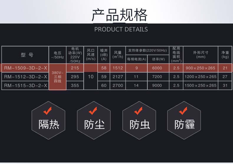 大風量貫流電熱風幕機(小功率)